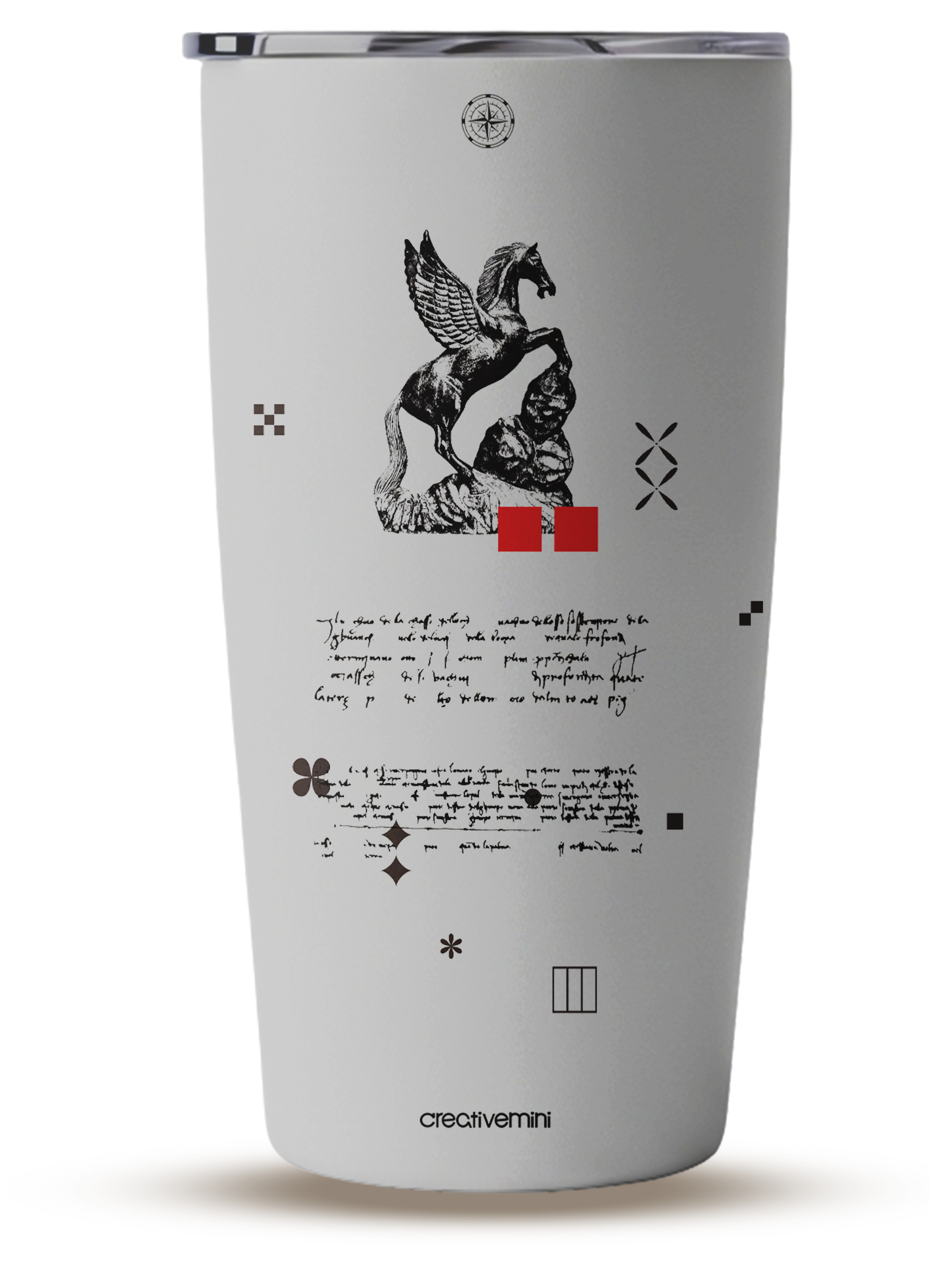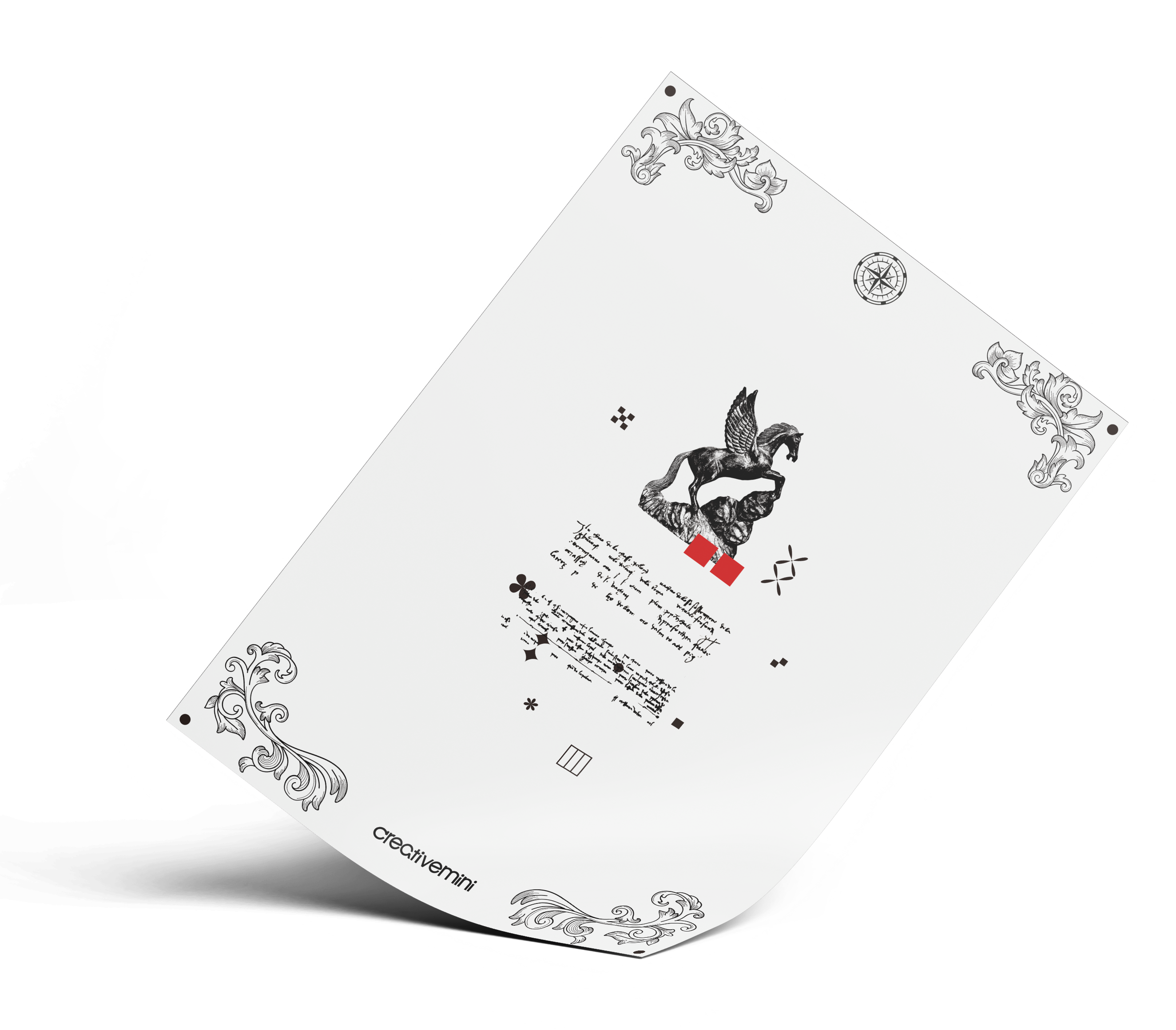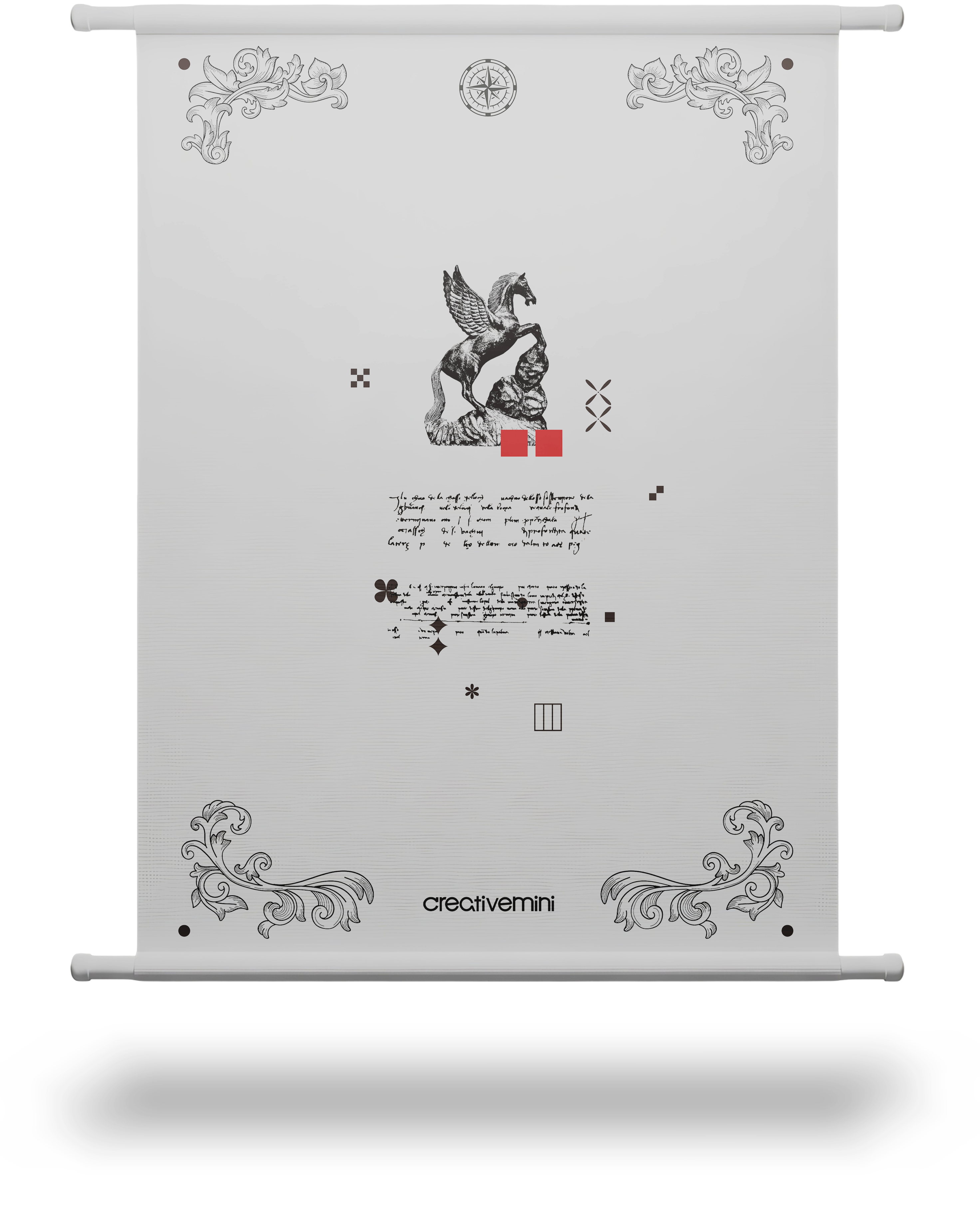 作品中,採用希臘神話中的佩加索斯( Pegasus )也是人稱「飛馬」作為視覺,在人類想像中有翅膀的馬代表豐富想像力,在不同文化和故事中著有神聖、自由、力量等意涵。